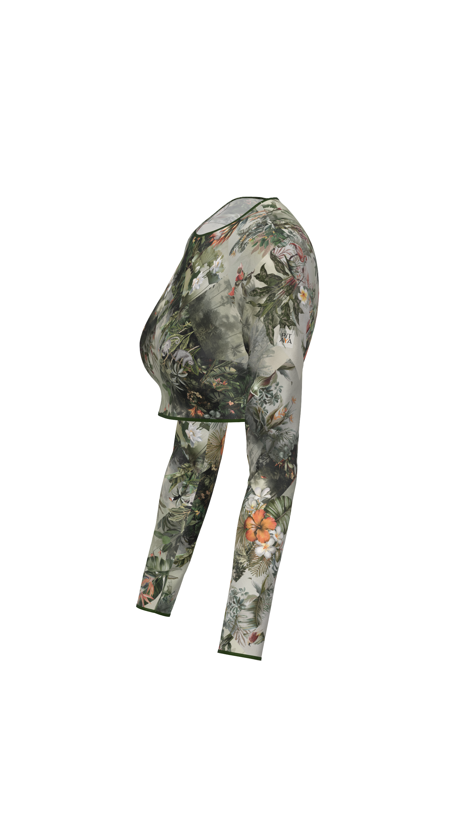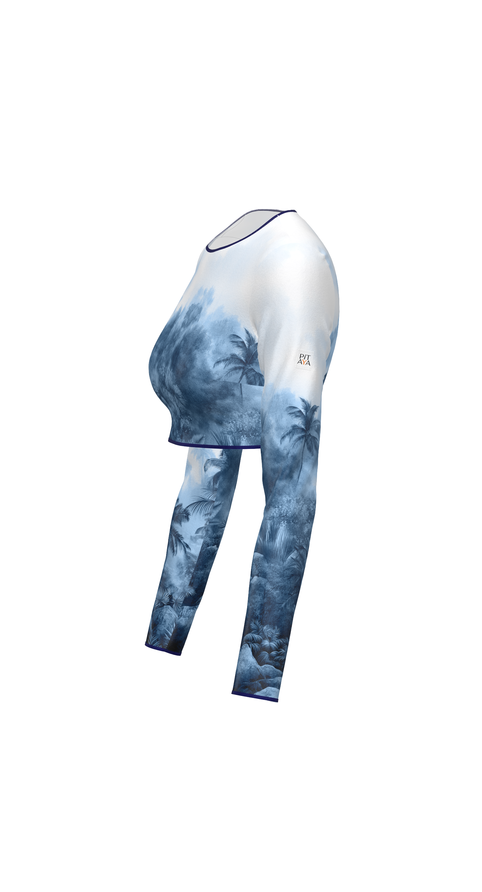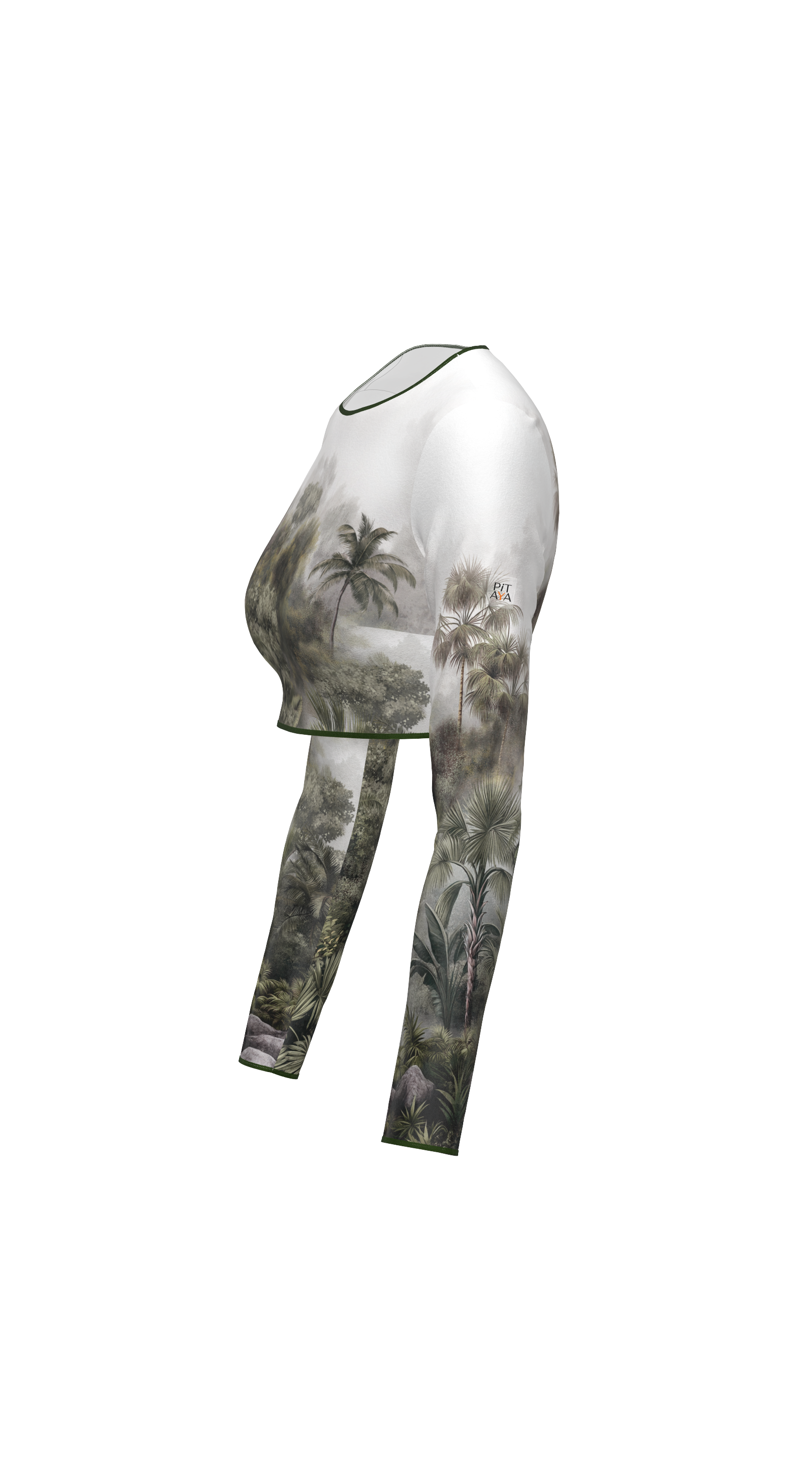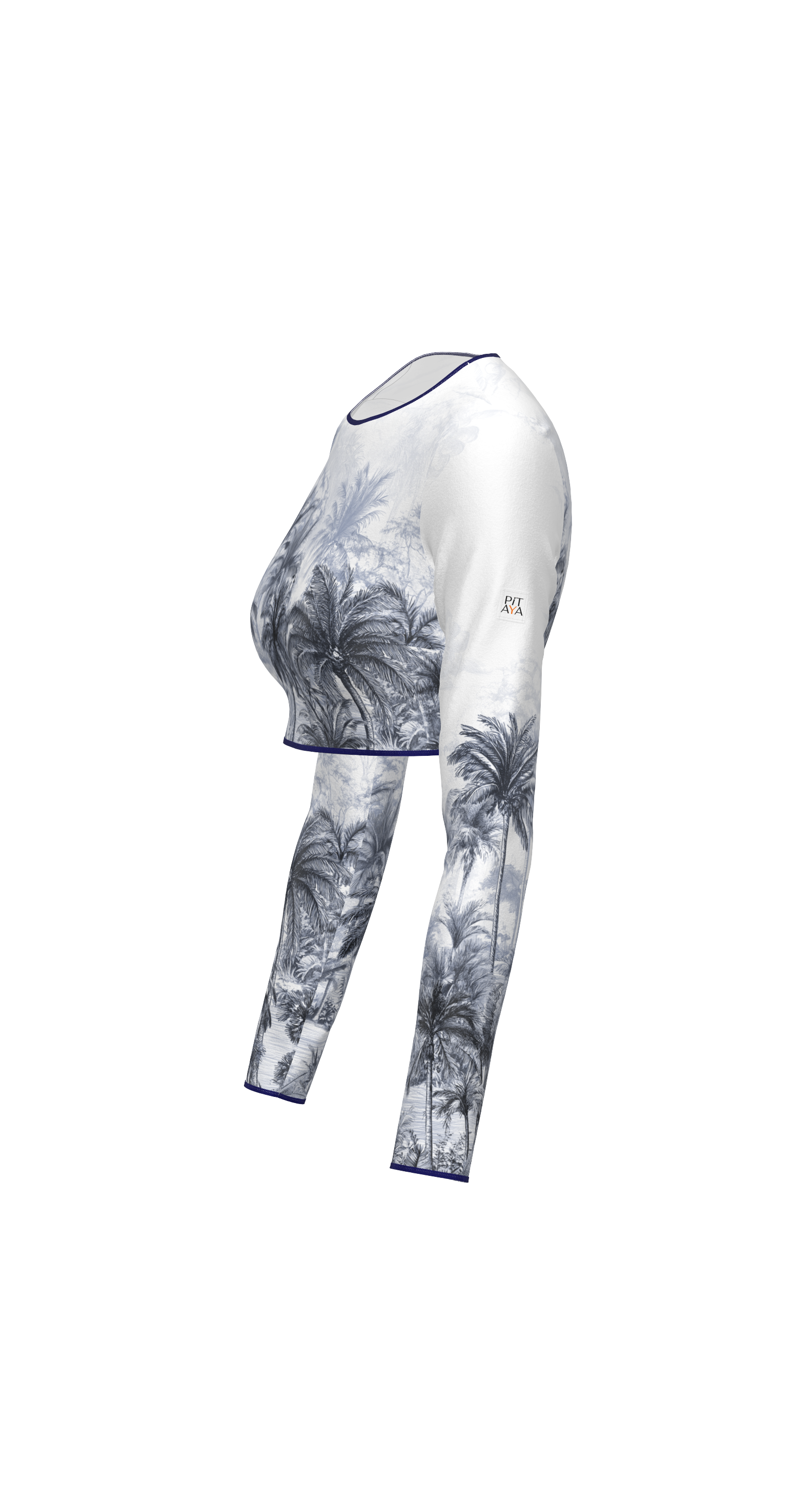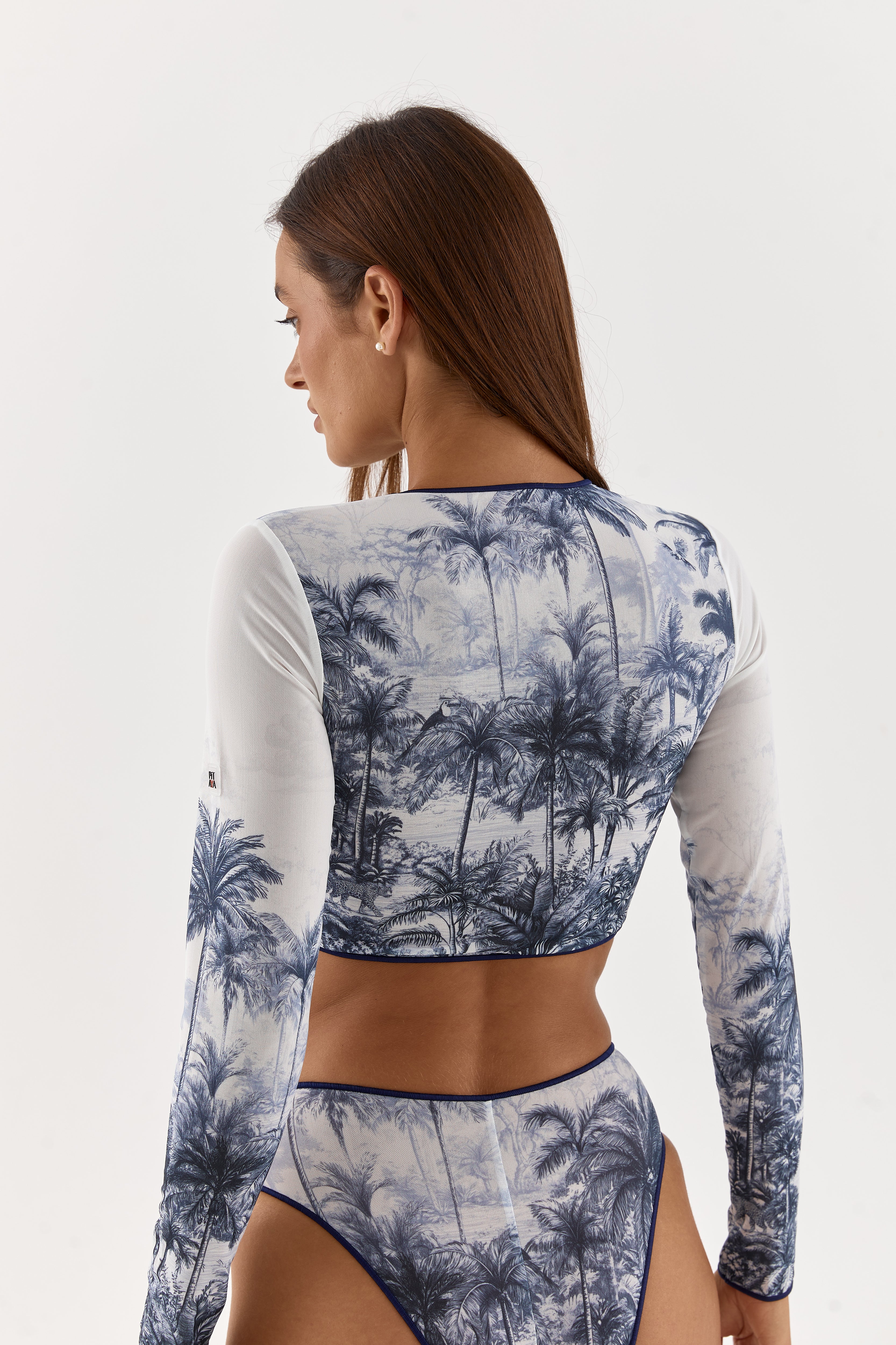 Miami - stylish crop top with long sleeves and decorative edging. The minimal neckline, long sleeves, and short length of the top create a wow effect. Pair it with high-waisted Goa swim bottoms, Barcelona leggings for sports, or jeans for a walk—you'll get maximum attention in all cases.